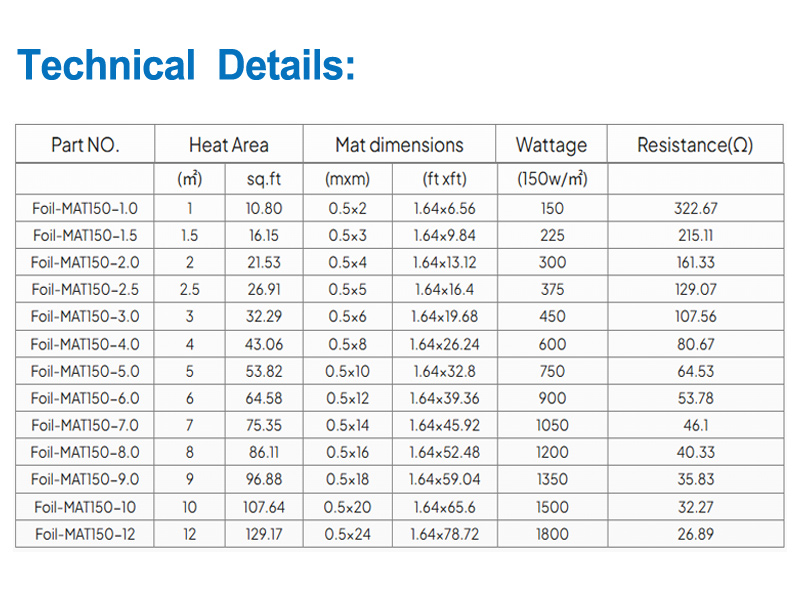 • Die Folienmatte ist einfach zu installieren, die Folienheizung sorgt für eine gleichmäßige und gleichmäßige Wärmeverteilung. Sie kann auch in Nassbereichen unter dem Bodenbelag installiert werden, ohne dass zusätzliche Erdgitter erforderlich sind.